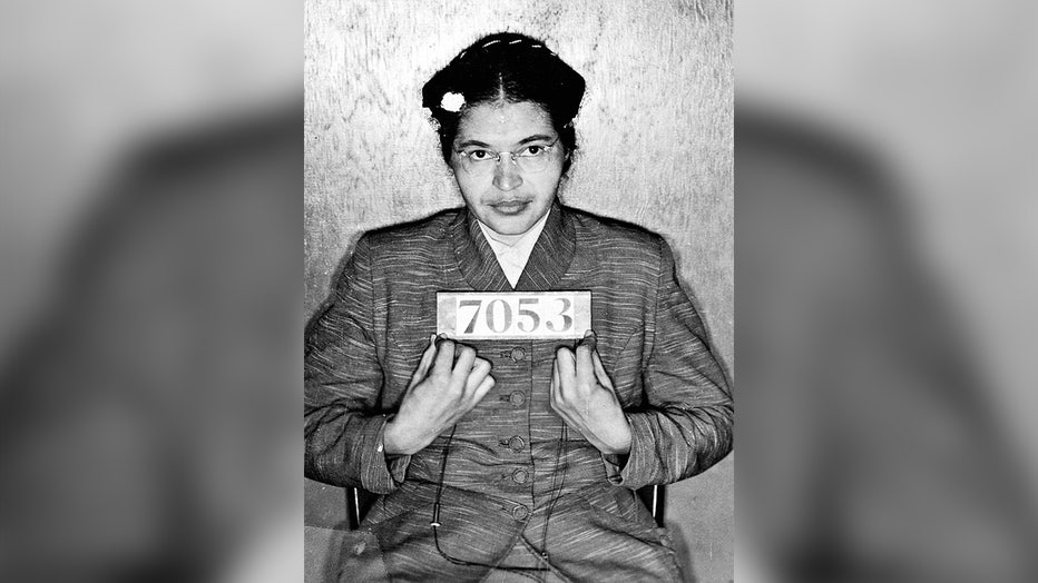 FILE - American civil rights activist Rosa Parks, Mug Shot, 1955.  (Universal History Archive/UIG via Getty Images)
