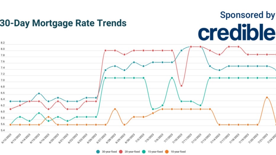 Check out the mortgage purchase rates for July 24, 2023, which are mixed from Friday. (Credible)