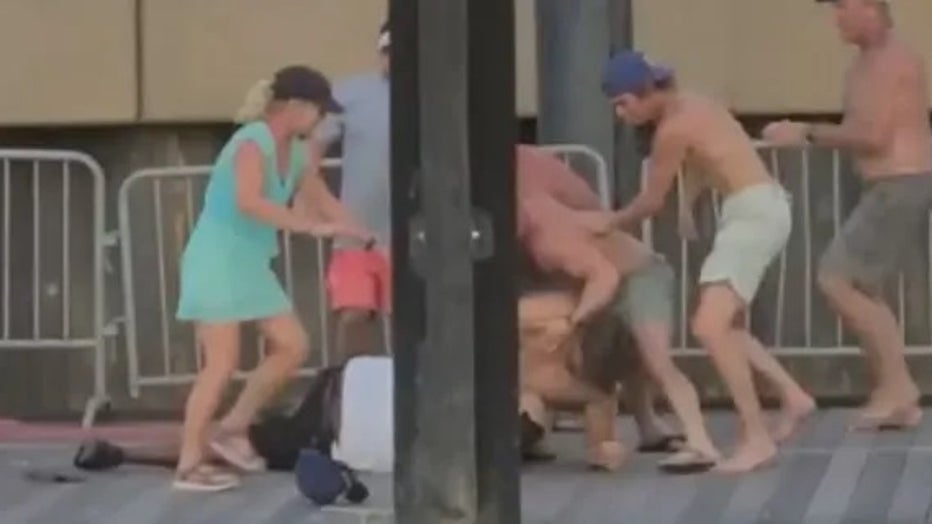 Members of the pontoon boat party can be seen in the video assisting in the attack, prompting crew members from the riverboat and other bystanders to join the fight.