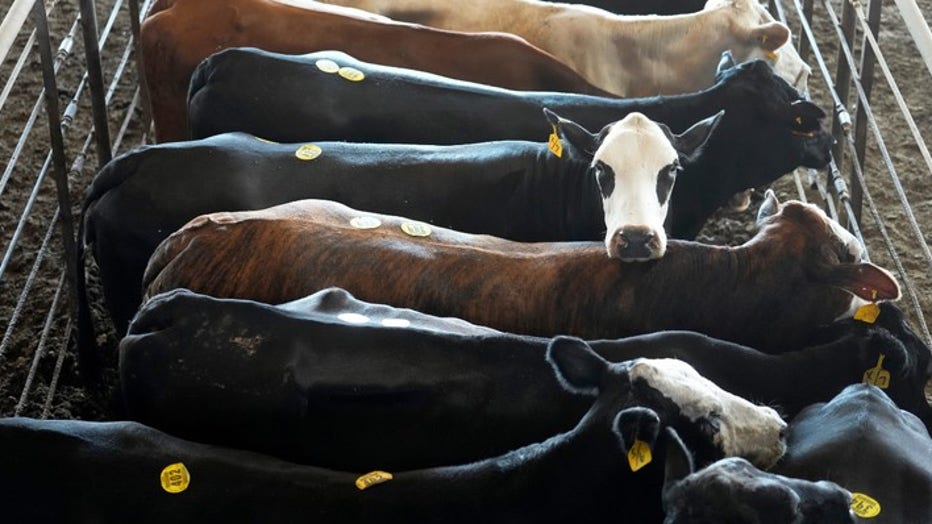 Cattle are shown in pens at the Cattlemen's Columbus Livestock Auction in Columbus, Texas, on Oct. 8, 2025. (Melissa Phillip/Houston Chronicle/Getty Images / Getty Images)