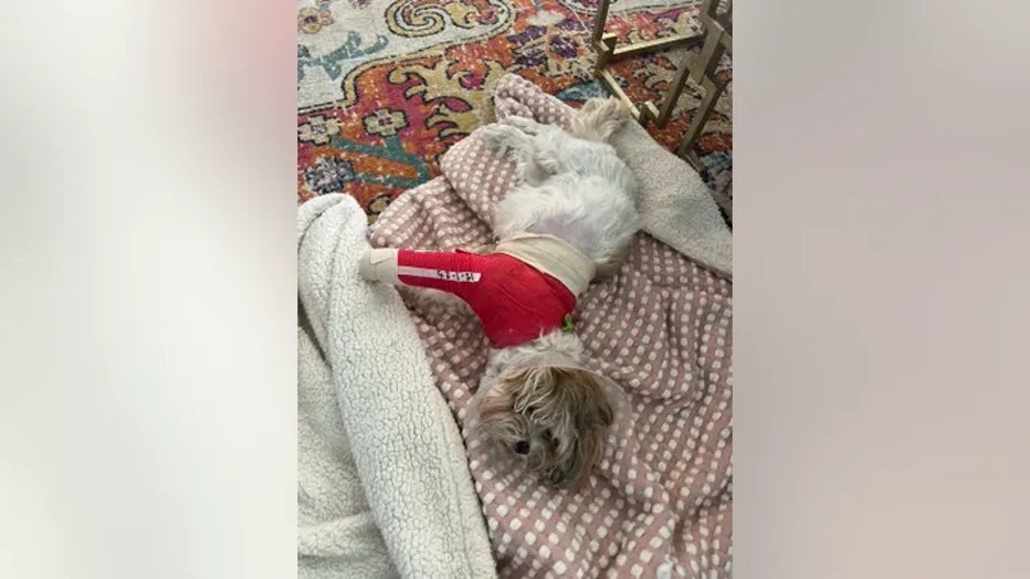 Oakley is pictured during her recovery after surviving a coyote attack. (Lane Dyer)