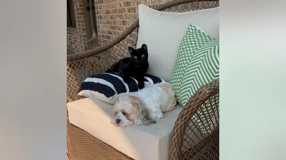 Binx the cat is pictured with Oakley, the Havanese pup whose life she saved. (Lane Dyer)