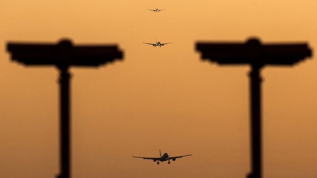 FILE - Passenger aircraft prepare to land. (DANIEL LEAL/AFP via Getty Images)