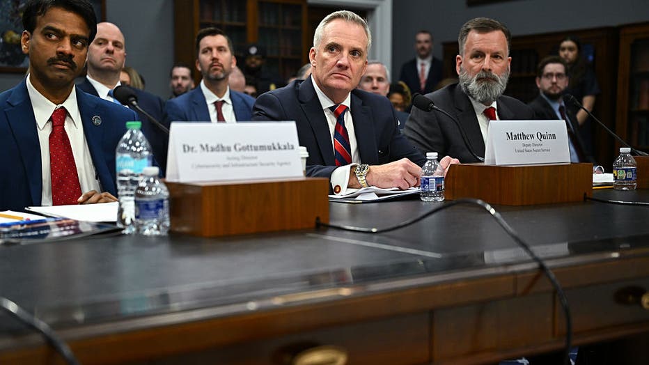 Dr. Madhu Gottumukkala, acting director of the Cybersecurity and Infrastructure Security Agency, from left, Matthew Quinn, deputy director of the U.S. Secret Service, and Gregg Phillips, associate administrator of the Office of Response and Recovery