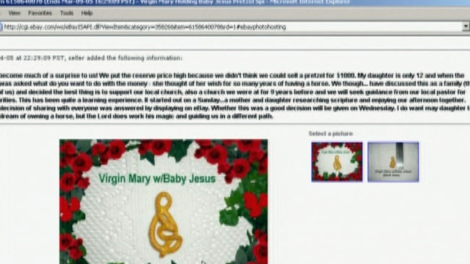 This pretzel, supposedly shaped like the Virgin Mary, was listed on eBay in 2005 (FOX / file).
