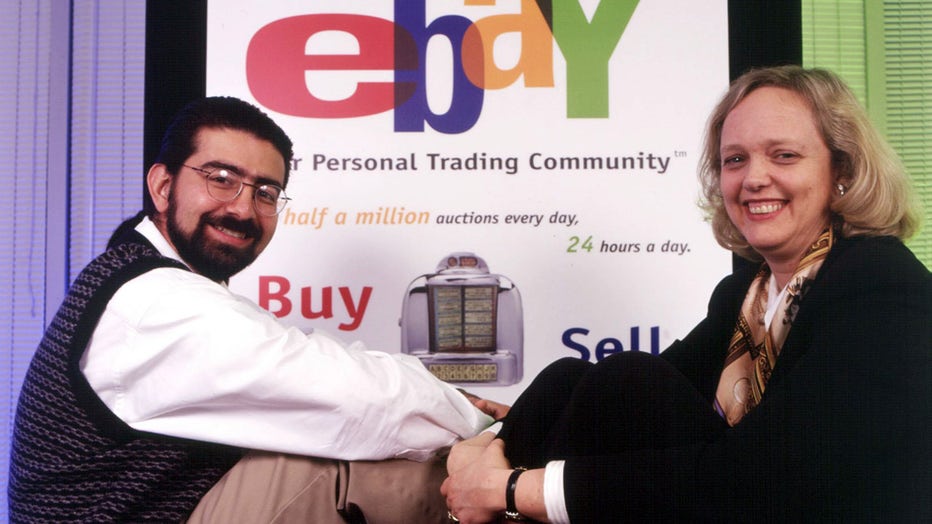 File: Chairman and founder Pierre Omidyar and CEO Meg Whitman of eBay.com, the online auction service, June 15, 1998. (James D. Wilson / Liaison Agency via Getty Images)