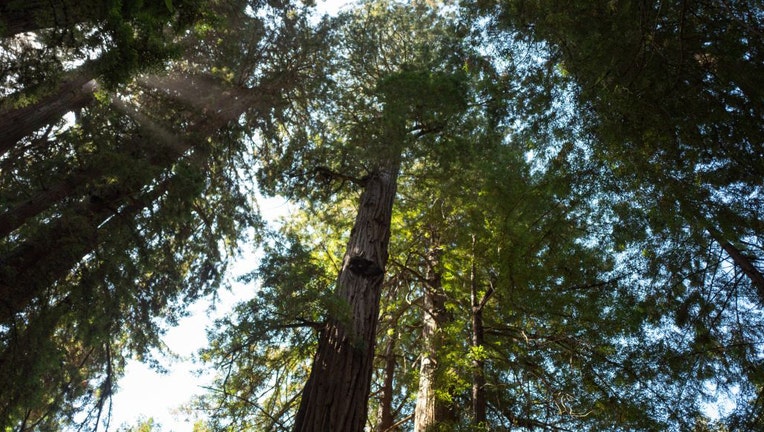 FILE-The canopy created by tall trees as seen from below at Muir Woods National Monument, Mill Valley, California, September 5, 2016. (Photo via Smith Collection/Gado/Getty Images).