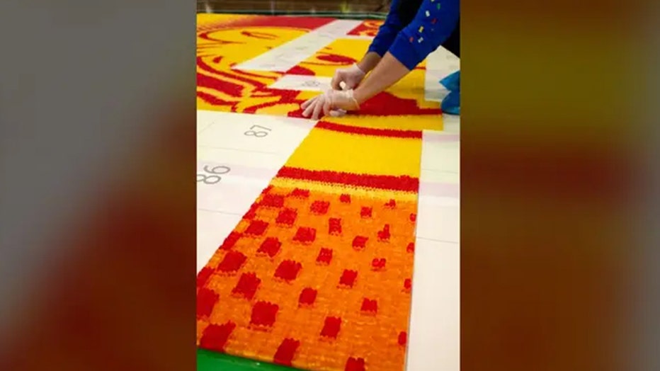 The mosaic, which features over 150,000 individual gummy bears, measures 353.1 square feet and took 300 people to build. (Credit: HARIBO of America, Inc via PR Newswire / Fox News)