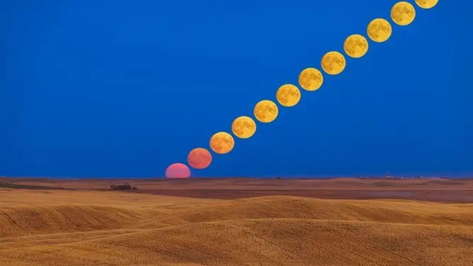 File photo: The rising Full Moon of September 9, 2022, the Harvest Moon for 2022, coming up over a rolling harvested prairie field near home in southern Alberta, on a very clear evening. This is a composite of 11 exposures blended with Lighter Color