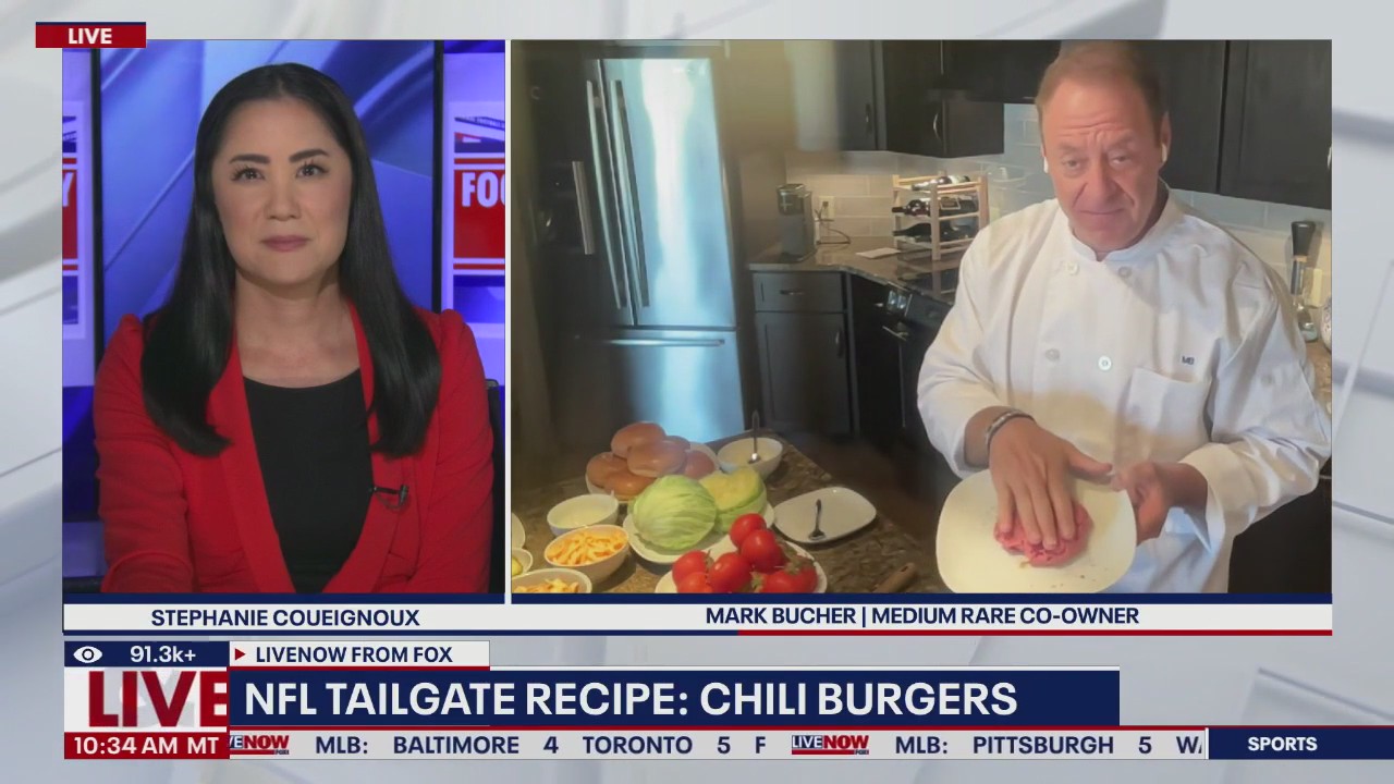 Mark Bucher, co-owner of Medium Rare joins LiveNOW's Stephanie Couiegnoux to share a tutorial of how to make chili burgers for NFL Sunday.
