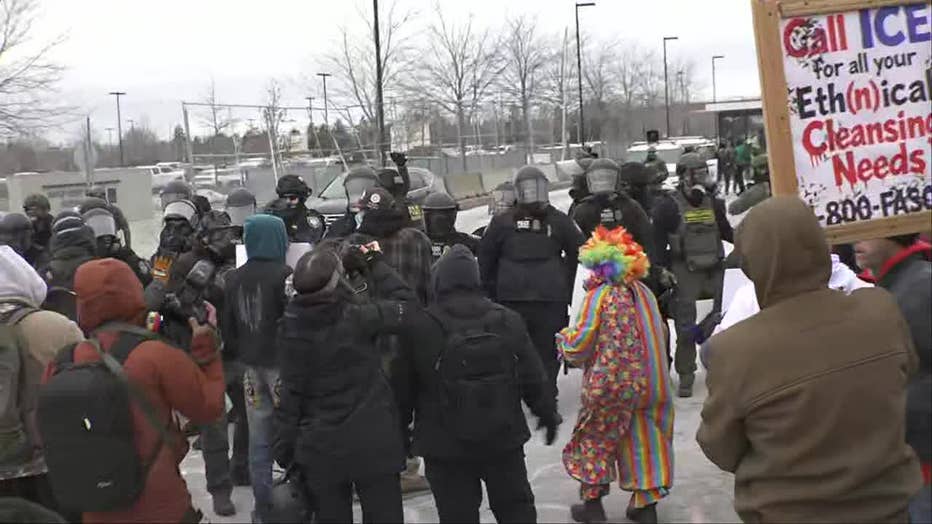 Protests outside the Whipple Federal Building on Jan. 15, 2026. (FOX 9)