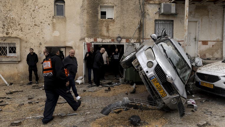 KFAR KASEM, ISRAEL - MARCH 26: Local residents and emergency responders inspect the impact site after part of a ballistic missile fired from Iran hit the Israeli - Arab city, leaving 2 injured on March 26, 2026 in Kfar Kasem, Israel. Iran has continu