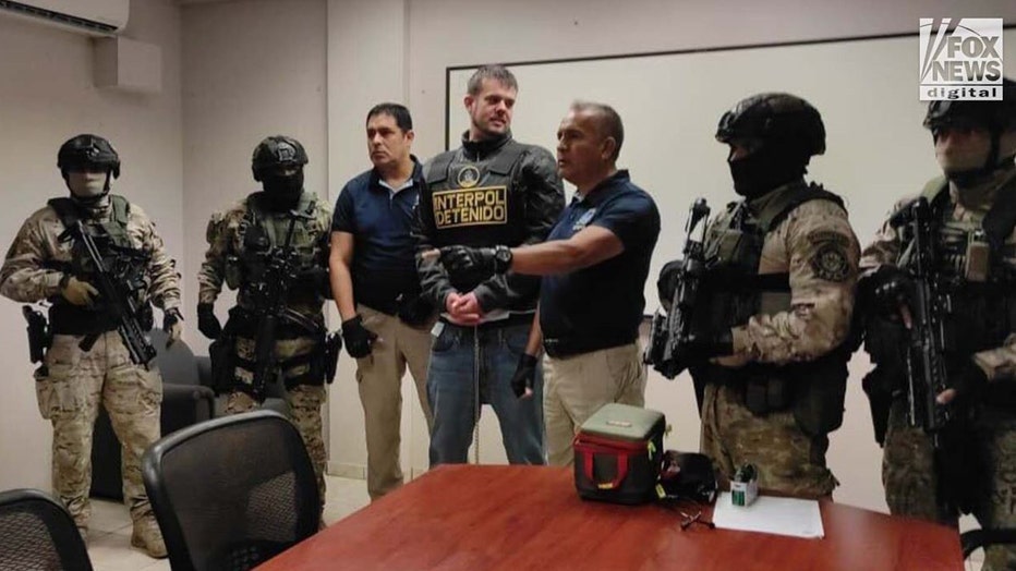 Joran van der Sloot is shown at Peru airport with authorities before heading to the United States. (Col. Carlos López Aeda for Fox News Digital)