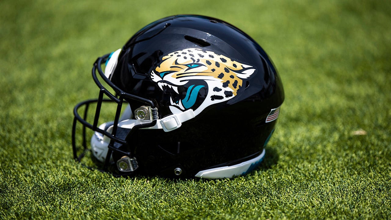 A Jacksonville Jaguars helmet during an offseason workout May 30, 2023, at TIAA Bank field in Jacksonville, Fla. (James Gilbert/Getty Images)
