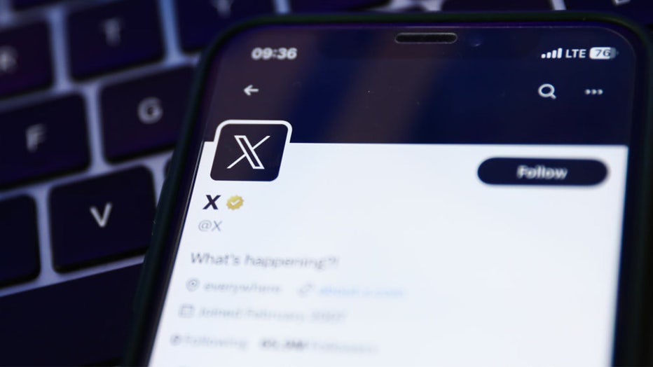 FILE - A laptop keyboard and Twitter X account on Twitter X displayed on a phone screen. (Jakub Porzycki/NurPhoto via Getty Images)