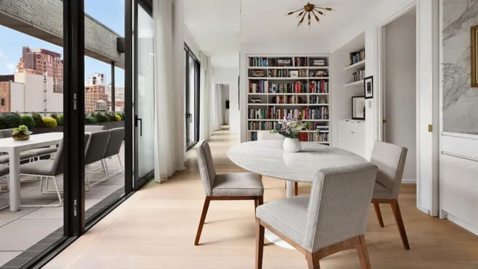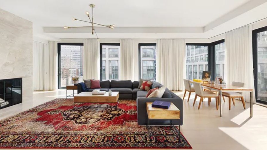 According to the listing, the single-floor unit has two private elevators. Myers' former home also features two terraces, one with a view of the Hudson River, which connects to a full library with a living area and fireplace.