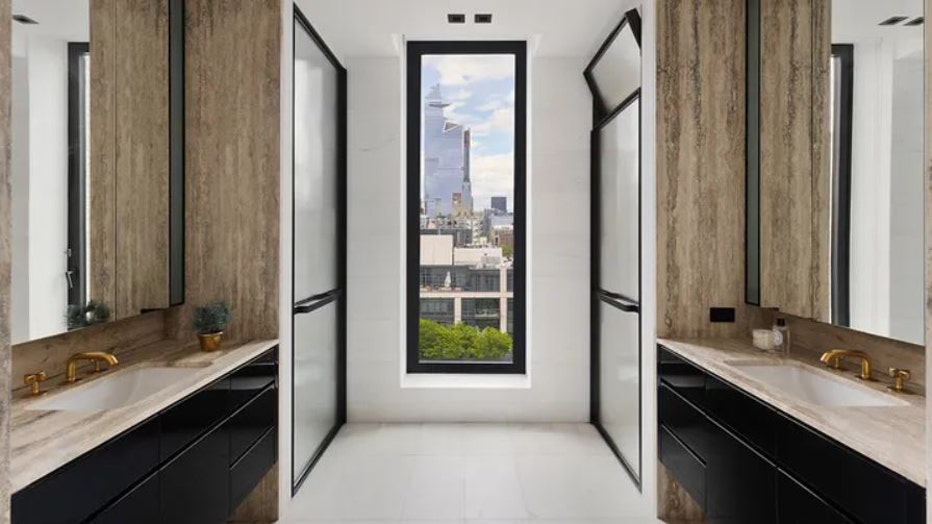 The owner's suite bathroom has heated marble flooring. (Will Ellis / Compass / Fox News)