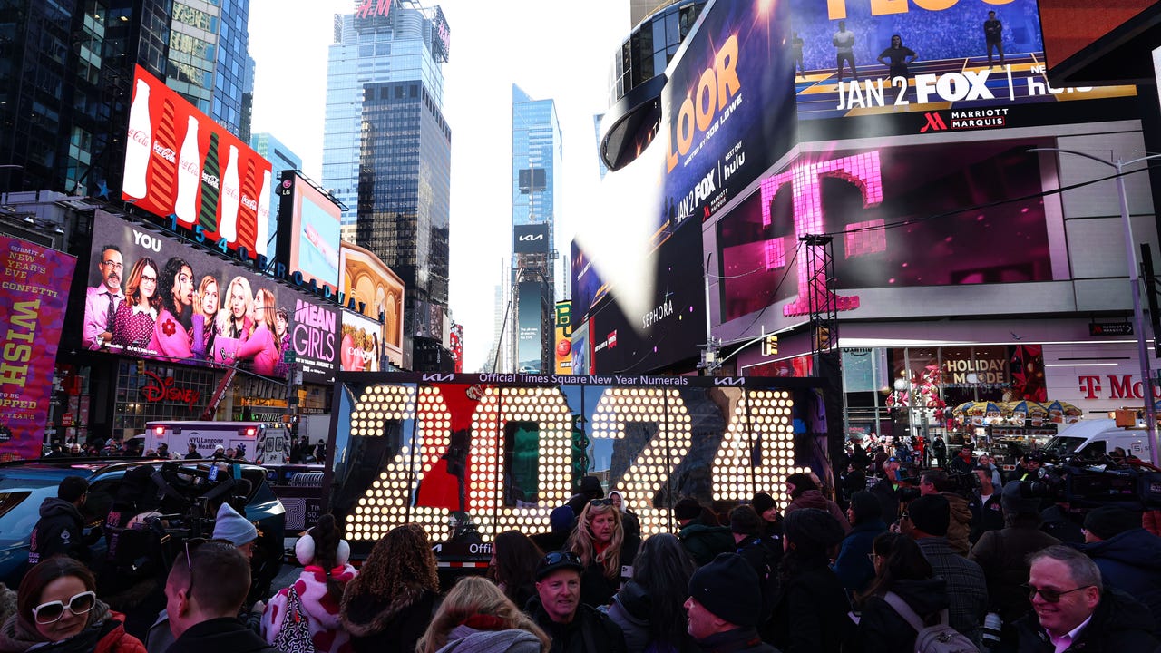 A view of the New Years Eve 2024 Numerals, to be lit up at midnight on December 31, in New Yorks world-famous Times Square in United States on December 20, 2023. (Photo by Lokman Vural Elibol/Anadolu via Getty Images)