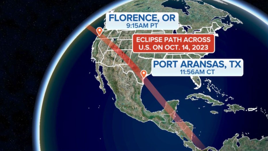 FILE - The path of the annular eclipse on Oct. 14, 2023. (FOX Weather)
