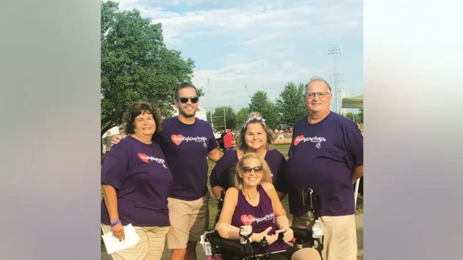 Fox is pictured with her family at her first annual softball tournament, which helped to raise funds for her care. (Kristin Fox via FOX News Digital)