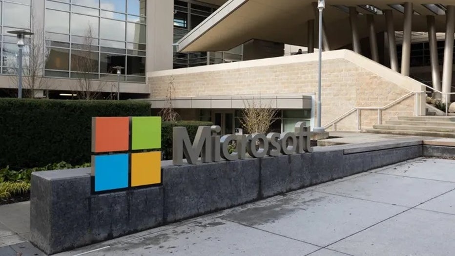 A sign outside the Microsoft Campus in Redmond, Wash., March 3, 2022. (Chona Kasinger/Bloomberg via Getty Images)