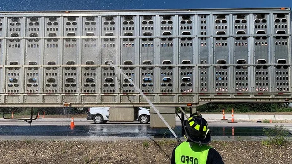 That's when crews grabbed their hoses to cool the pigs off as temperatures reached nearly 90 degrees in the area at the time.