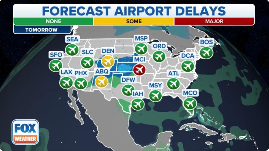 Kansas City International Airport (MCI), Denver International Airport (DEN) and Albuquerque International Sunport (ABQ) could see impacts from the storm.