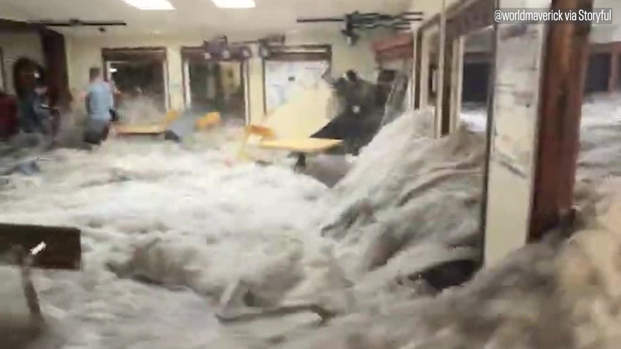 Chaos after large waves crash through doors, windows