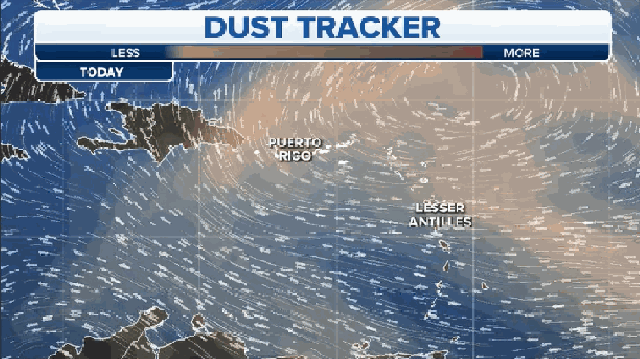 Saharan dust will continue to blow across the Atlantic Ocean and Puerto Rico this week. (FOX Weather)