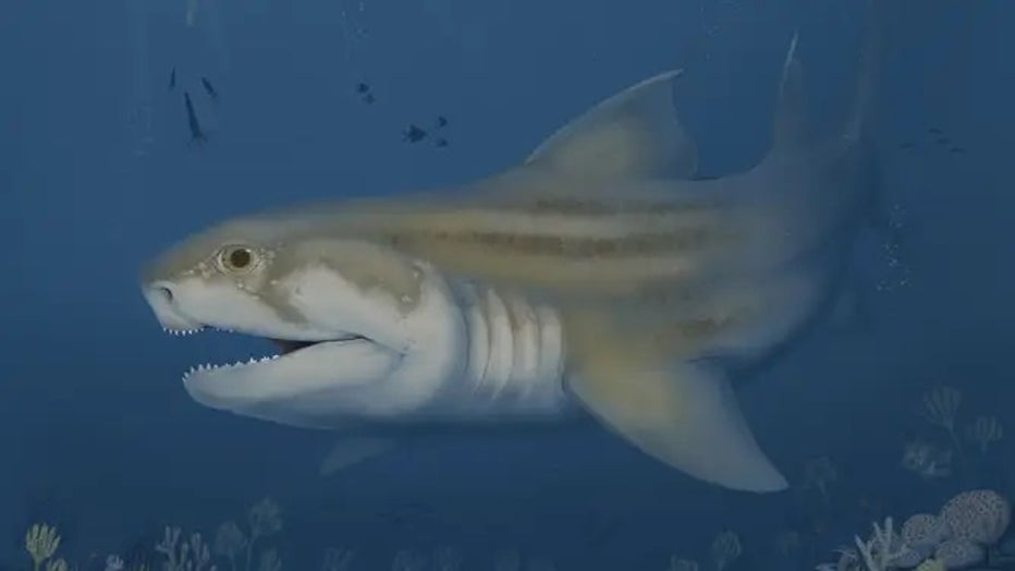 An illustration of two Troglocladodus trimblei. (Benji Paynose / FOX Weather)