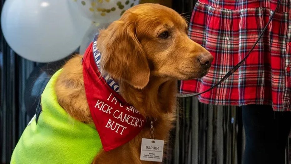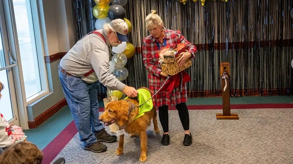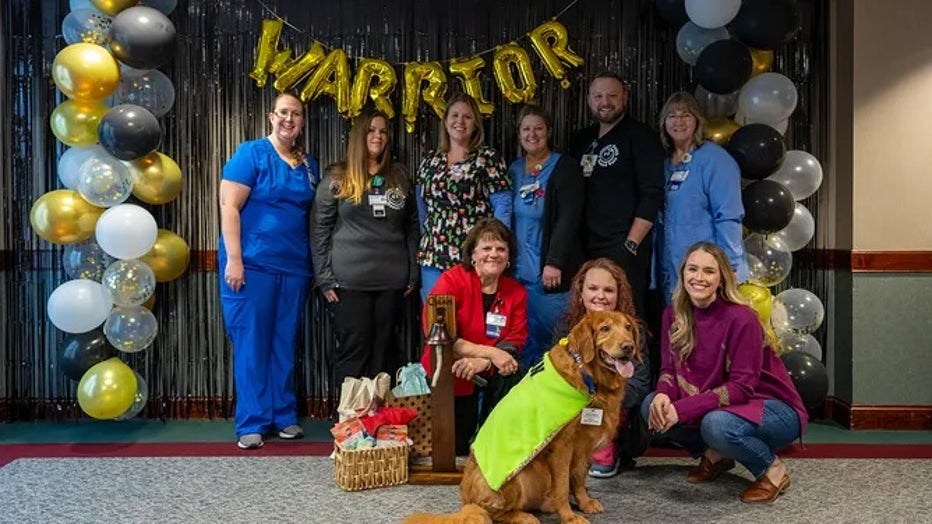 Tears flow as North Carolina therapy dog celebrates end of cancer treatment by ringing bell