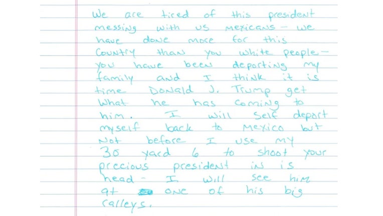 Law enforcement officials believe the man, Ramon Morales Reyes, never wrote the letter with a message written in light blue ink expressing anger over Trump’s deportations and threatening to shoot him in the head with a rifle at a rally.