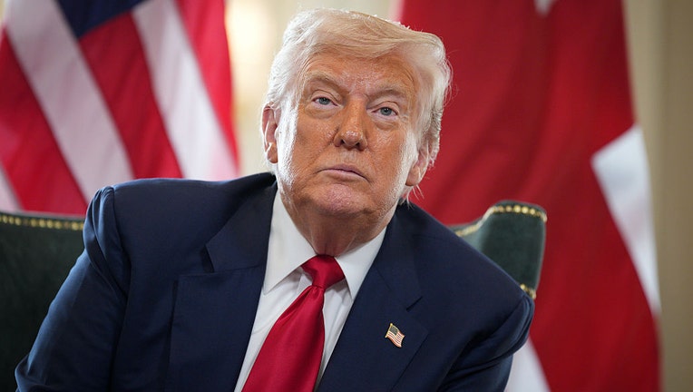 FILE-President Donald Trump talks to the media as he meets with British Prime Minister Keir Starmer (not pictured) at Trump Turnberry golf club on July 28, 2025 in Turnberry, Scotland. (Photo by Christopher Furlong/Getty Images)