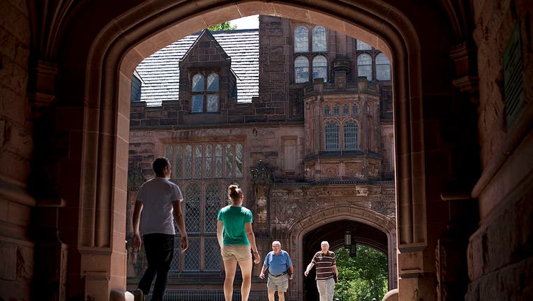Pedestrians walk through arches of the East Pyne building on the Princeton University campus in Princeton, New Jersey, U.S., on Monday, June 21, 2010. Photographer: Emile Wamsteker/Bloomberg via Getty Images