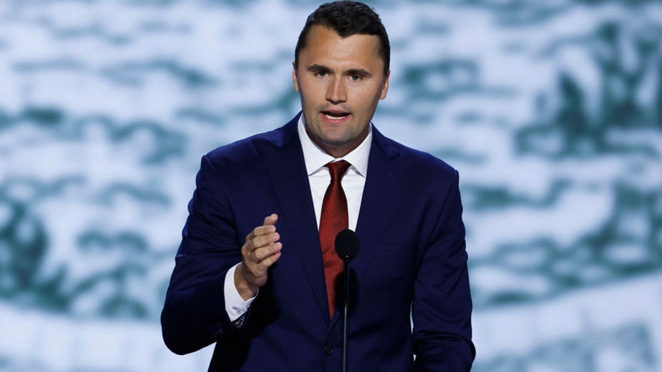 FILE - CEO of Turning Point USA Charlie Kirk speaks on stage on the first day of the Republican National Convention at the Fiserv Forum on July 15, 2024 in Milwaukee, Wisconsin. Photo by Chip Somodevilla/Getty Images)