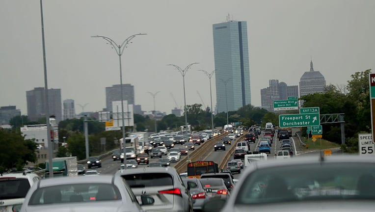 FILE - Traffic on 93 looking North toward Boston ahead of the Memorial Day Weekend in Boston on May 28, 2021. (Photo by Suzanne Kreiter/The Boston Globe via Getty Images)