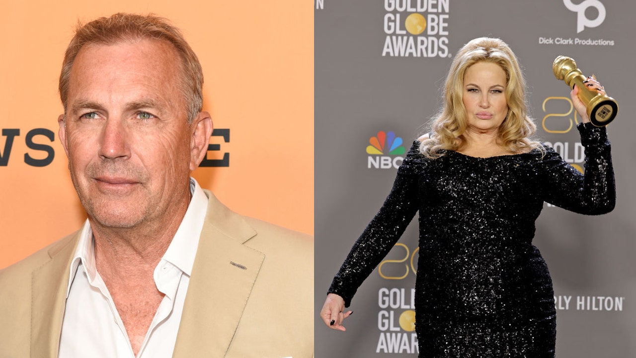 FILE-Side-by-side photo of Kevin Costner and Jennifer Coolidge. (Costner photo by Presley Ann/Getty Images) (Coolidge by Amy Sussman/Getty Images)