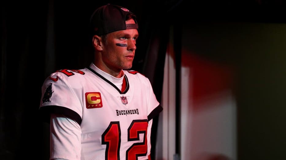 TAMPA, FL - JANUARY 16: Tom Brady #12 of the Tampa Bay Buccaneers walks through the tunnel prior to an NFL wild card playoff football game against the Dallas Cowboys at Raymond James Stadium on January 16, 2023 in Tampa, Florida. (Photo by Kevin Sabi (Getty Images)