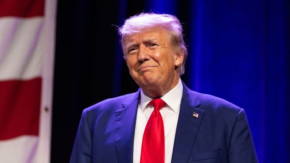 President Donald J. Trump enters the stage during the Republican Party of Iowa 2023 Lincoln Dinner at the Iowa Events Center in Des Moines, Iowa, Friday, July 28, 2023. (Photo by Rebecca S. Gratz for The Washington Post via Getty Images)