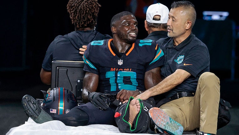 Dolphins star Tyreek Hill carted off field after gruesome knee injury on MNF