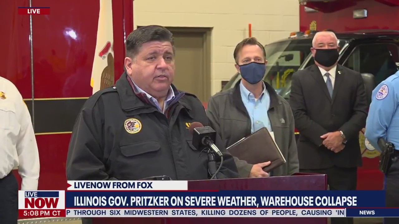 At least six people have died after severe weather struck an Amazon facility in Edwardsville, Illinois, Illinois Gov. Pritzker told reporters Saturday evening. The roof of the building was ripped off and a wall collapsed.