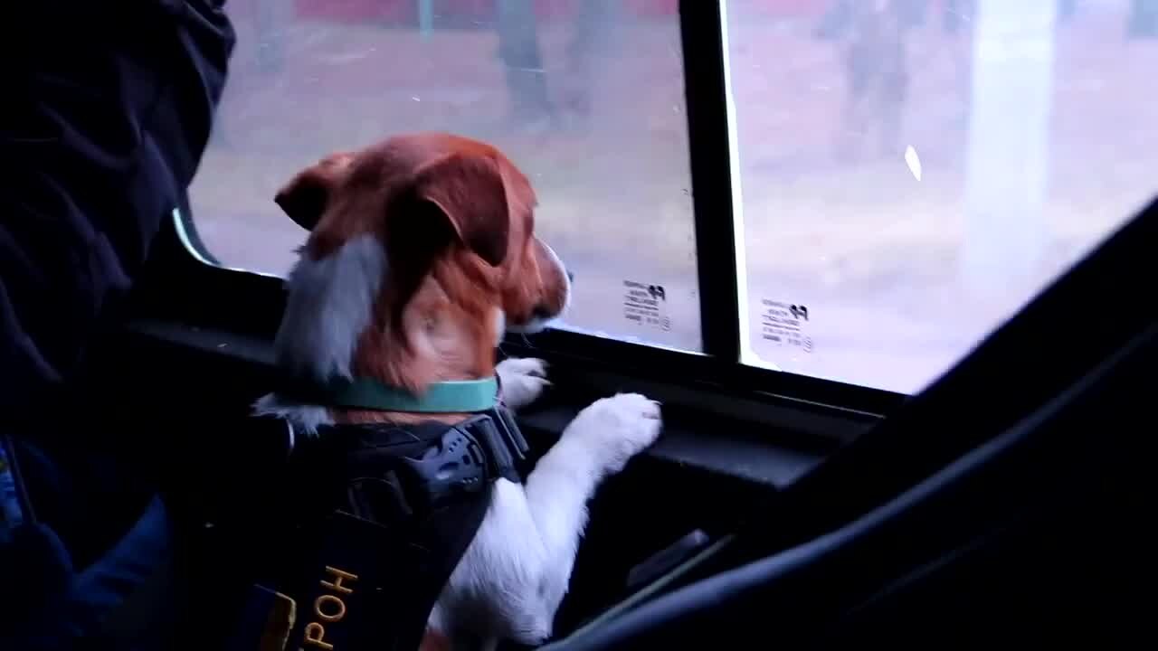 Dog named 'Patron' helps locate mines, unexploded shells after Russian retreat