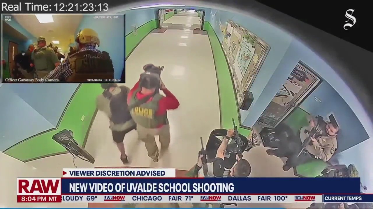 Portions of surveillance footage of the Robb Elementary School shooting were published by the Austin American-Statesman. The footage shows the gunman firing multiple shots from an AR-15 style rifle outside the school, then entering the building and shooting his way into adjoining classrooms. Texas Department of Public Safety Director Steven McCraw has cast the blame on Uvalde school police chief Pete Arredondo for the delayed response. Uvalde Mayor Don McLaughlin has defended the local police response, accusing McCraw of deflecting blame from state law enforcement.