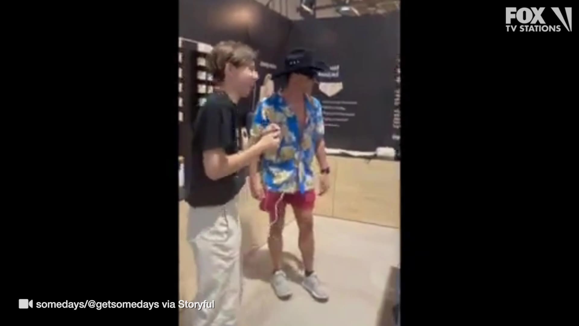 The participants used the machine that simulates menstrual cramps during the Calgary Stampede, an annual rodeo, exhibition, and festival in July in Canada. (Credit: somedays/@getsomedays via Storyful)