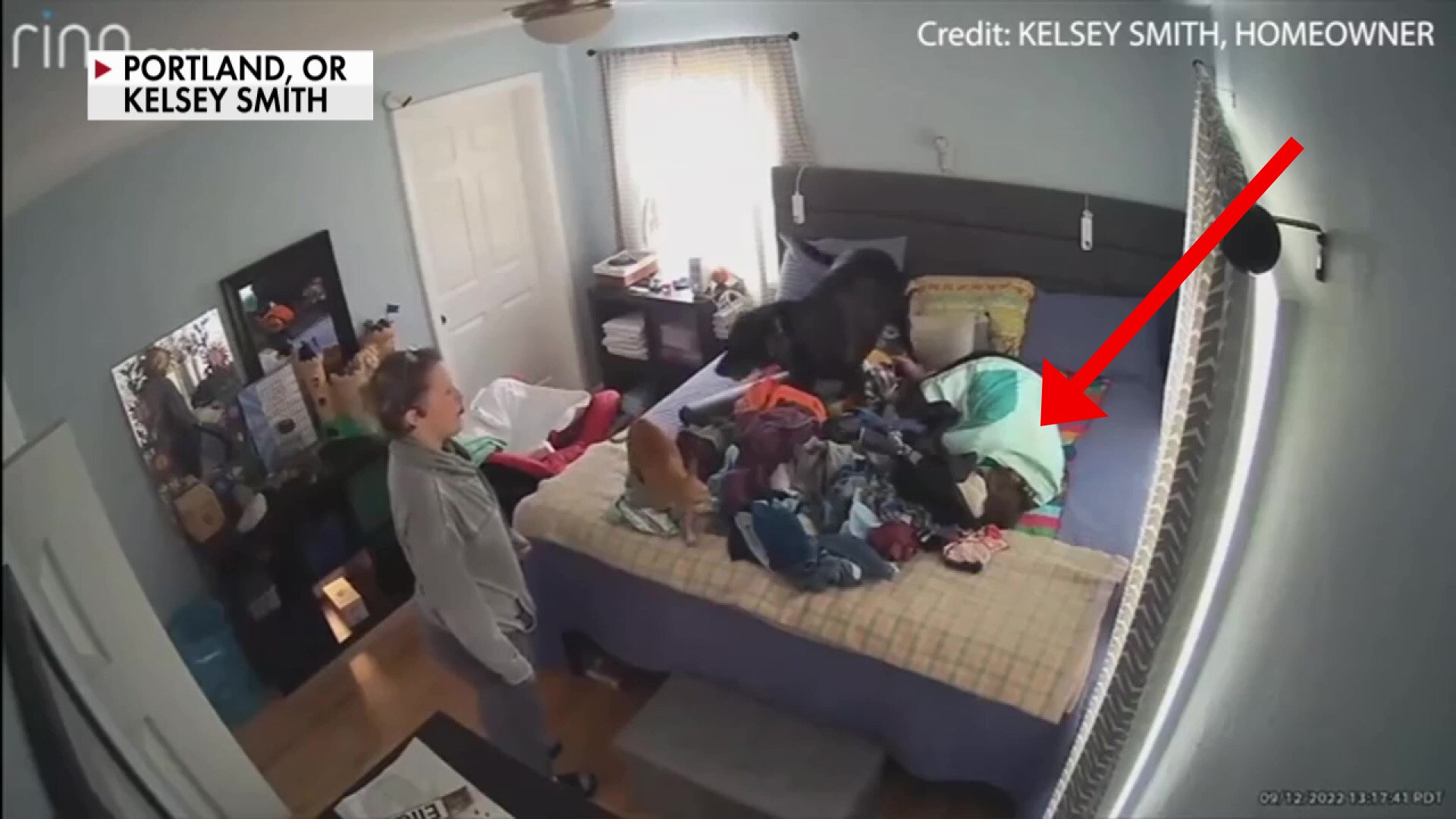 Security footage shows intruder sleeping on bed