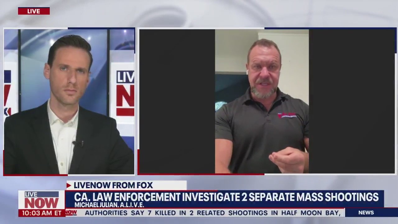 At least 18 people are dead after two separate shootings in different areas of California. Michael Julian, an active shooter prevention expert with A.L.I.V.E. joined LiveNOW from FOX's Josh Breslow to discuss the incidents.