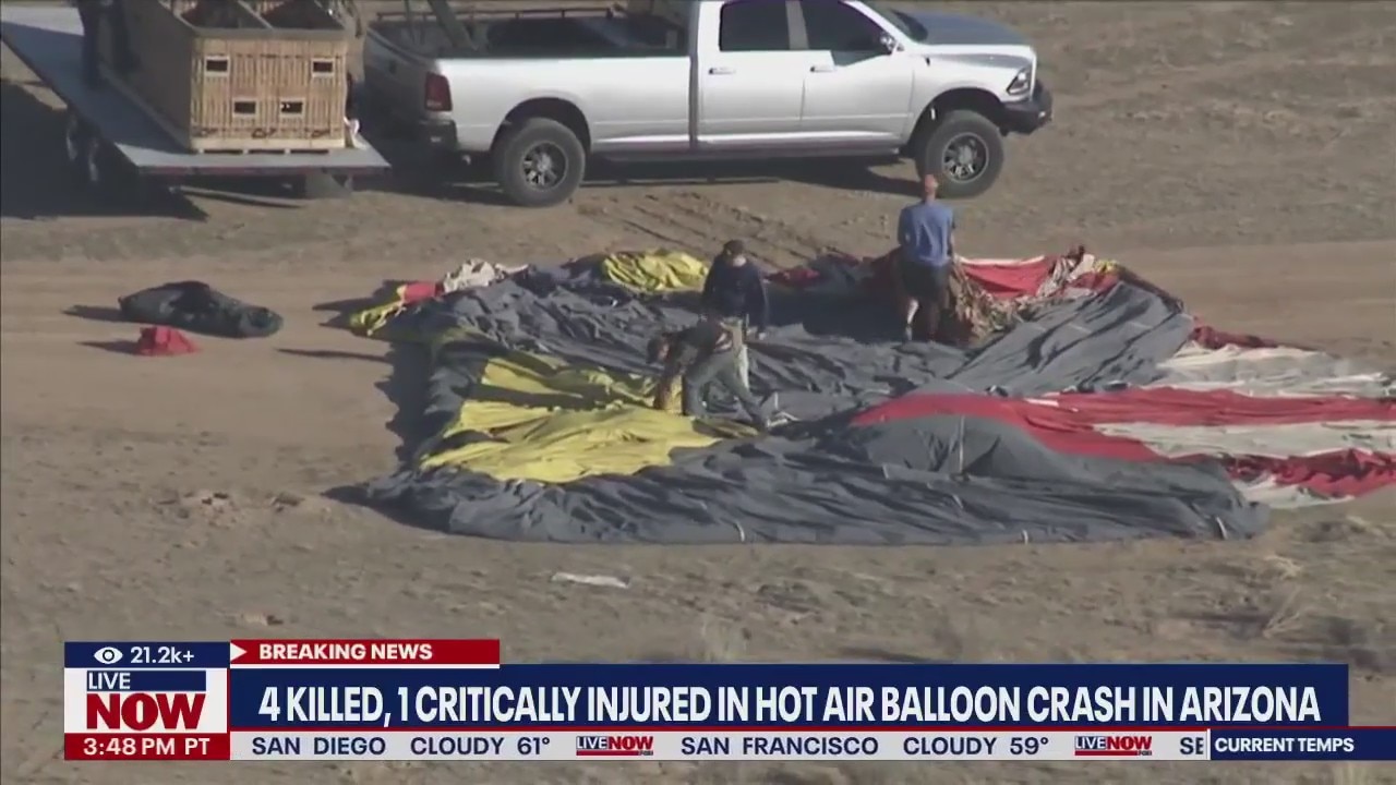 Four people are dead and one person is critically injured after a hot air balloon crashed in Eloy, Arizona early Sunday morning.