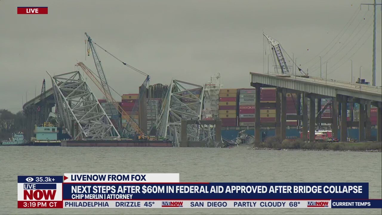 Maryland Gov. Wes Moore warned of a ?very long road ahead? to recover from the loss of Baltimore?s Francis Scott Key Bridge as the Biden administration approved $60 million in immediate federal aid after the deadly collapse.
