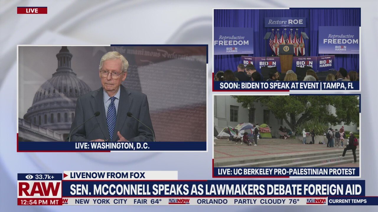 Senator Mitch McConnell (R-KY) spoke to reporters Tuesday afternoon as lawmakers considered the passage of the bill providing aid to Israel, Ukraine and the Indo-Pacific region.