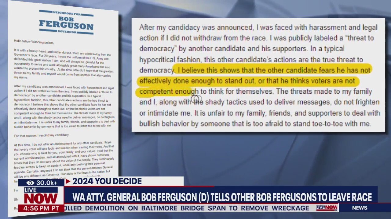 WA Atty General Bob Ferguson tells others of same name to leave race